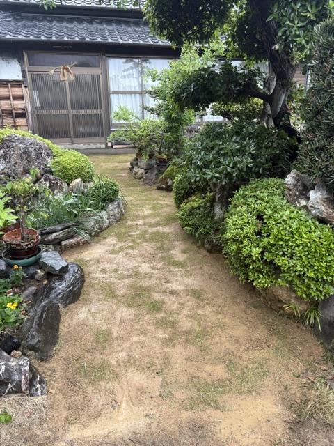 使用したのは、省管理型コウライシバ「TM9」です。この芝生は、美しい緑色と管理が楽というのが特徴で、多くのお客様にご満足いただいております。