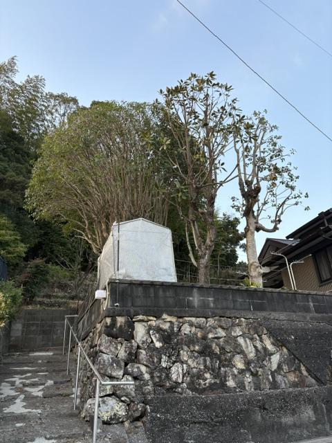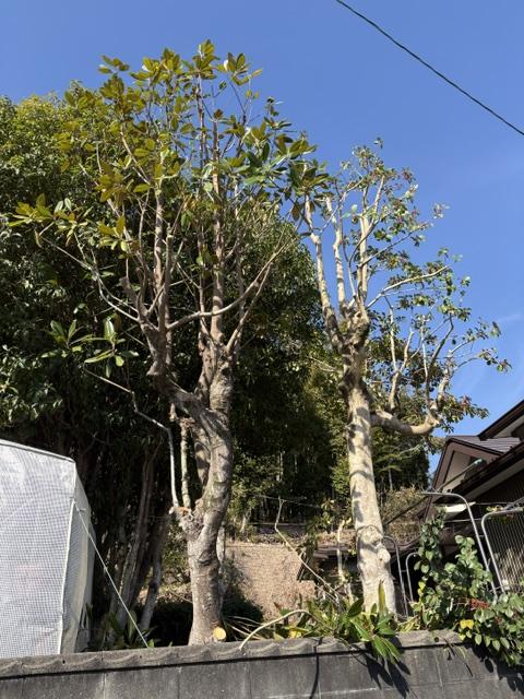 今日は南国市にて、庭木の伐採と強剪定を行いました。今回は特にマキノキとヤマモモの伐採、そしてキンモクセイの強剪定という作業でした。作業中は常に細心の注意を払い、お客様のご要望に沿った形で作業を進めました。樹木が生い茂っていた庭が、すっきりとした印象に変わり、お客様にも大変喜んでいただきました。