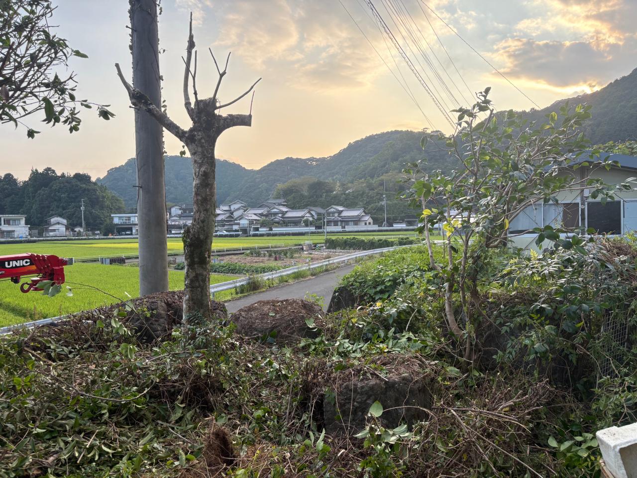 今日は仕事で朝から四万十市へ出発しました。午前中、別件のお見積もりのお問い合わせがあり、急遽打ち合わせの予定が入りました。そのため、午後には四万十市から香南市夜須町へと移動することに。夜須町では、お打ち合わせさせていただいた上で、今日できる伐採を少し進めることができ、残りは日を改めて作業させていただくことに。