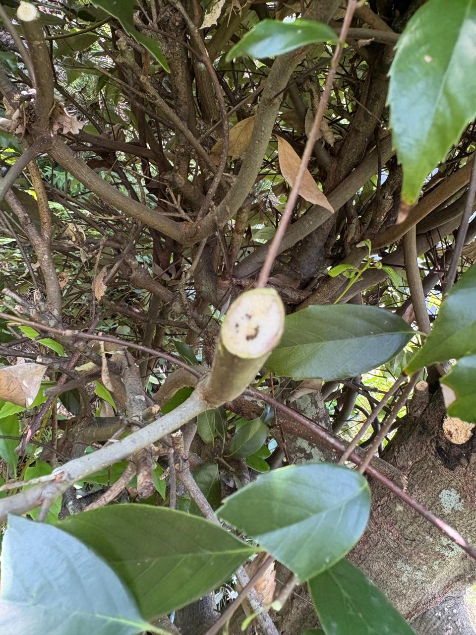 今日、おかげさまで先週から取り組んでいた中土佐町久礼の剪定作業が無事に終了しました。当初、この場所は空き家で、葛や雑草、雑木が繁茂し、その結果、庭全体が非常にうっそうとしていましたが、少しずつ丁寧に作業してかなりスッキリとした印象を取り戻すことができました。このような成果を得られたことを大変嬉しく思います。