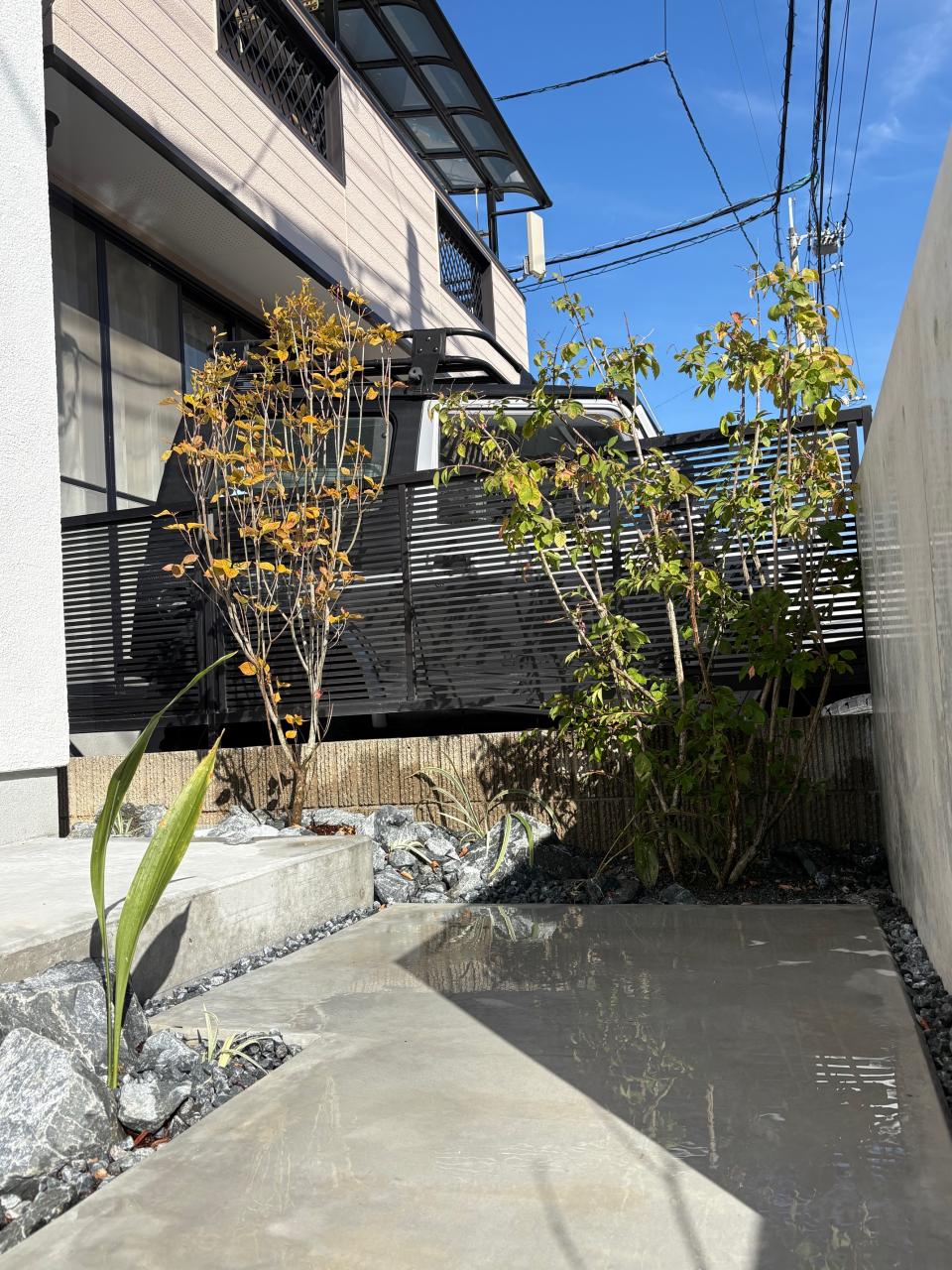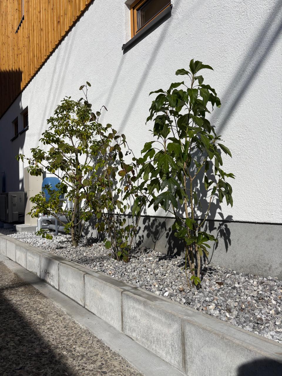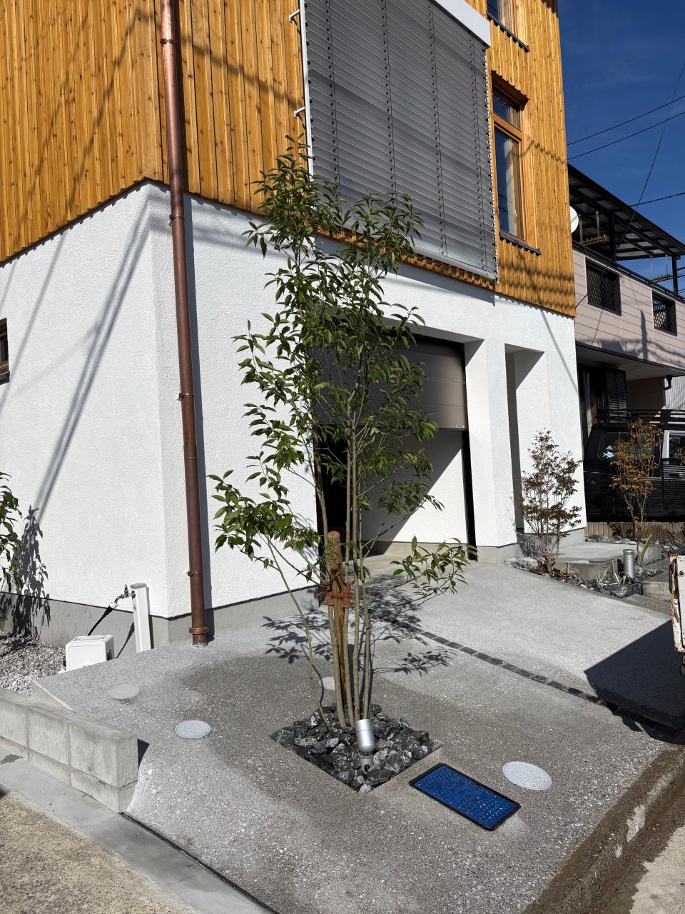 高知市にて、以前の植栽で水道管の影響で設置できなかったナナミノキのシンボルツリーを、遂に植栽させていただきました。この木が加わることで、庭の雰囲気が一変し、より調和の取れた空間となりました。植物の存在が生み出す雰囲気の変化は、庭全体に新たな生命を吹き込むようです。創樹園は、高知県全域およびその他の地域でも庭木の剪定、伐採、外構工事、エクステリアのご提案と施工を行っております。お庭の新しいシンボルツリーの設計、古くなった木の状態改善、またはエクステリアのリニューアルをお考えの方は、どうぞお気軽にお問い合わせください。見積もりは無料で行っておりますので、まずはご相談を。どのような空間でも、その特性を生かして最適なご提案をいたします。