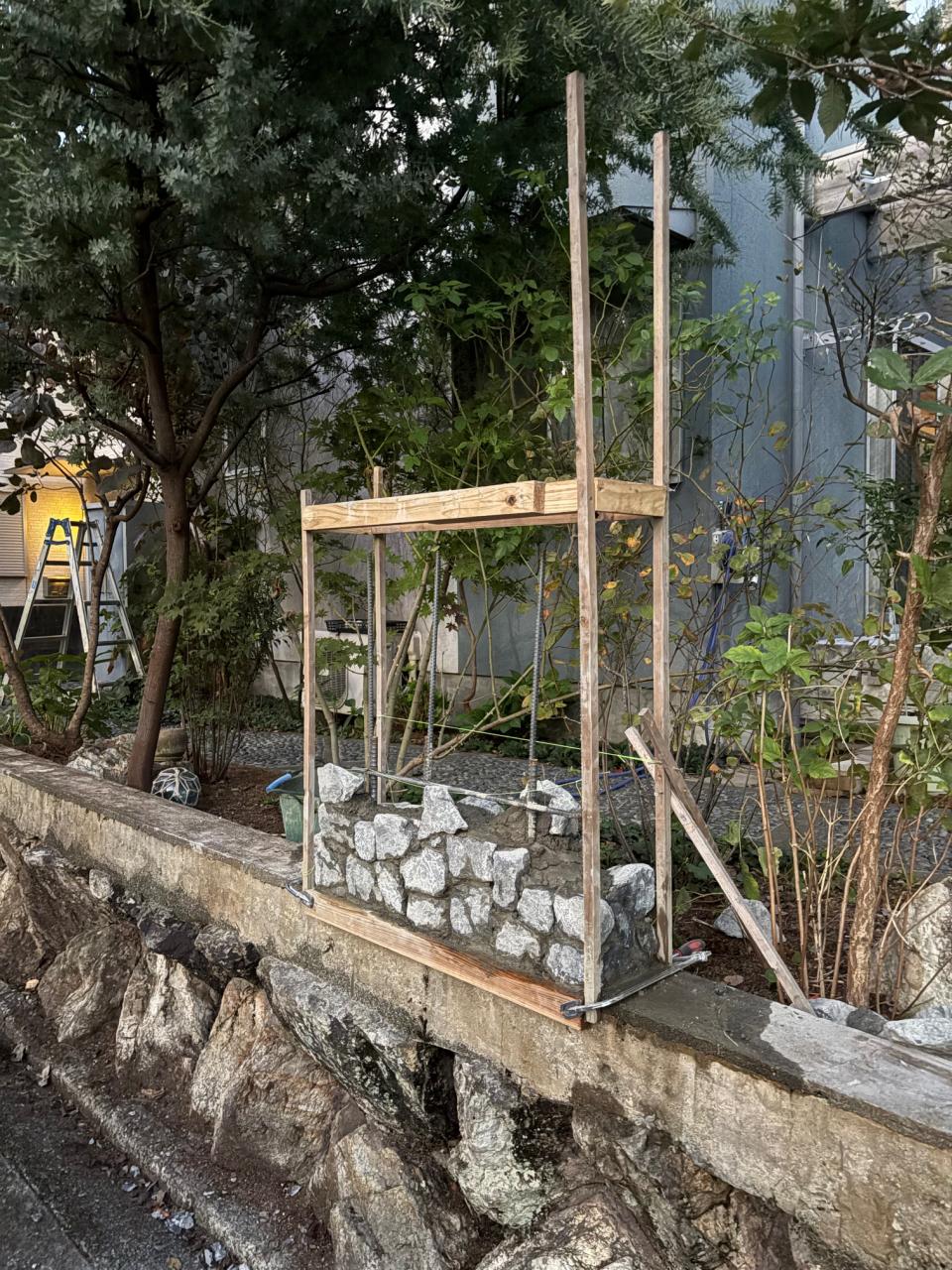 今日も高知市にて、フェンスと石積みの柵の作成を進めておりました。一つ目の石積みが無事に完了し、その後は既存の門を設置して最終的な仕上げを行いました。お客様に満足いただける仕上がりを目指して、細部にまでこだわりを持って取り組んでおります。