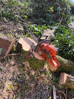 本日は、高知市にてフェンスの設置作業を予定しておりましたが、発注していた部材の高さが異なっていたため、急遽予定を変更することになりました。このため、日高村に移動し、伐採作業を行いました。