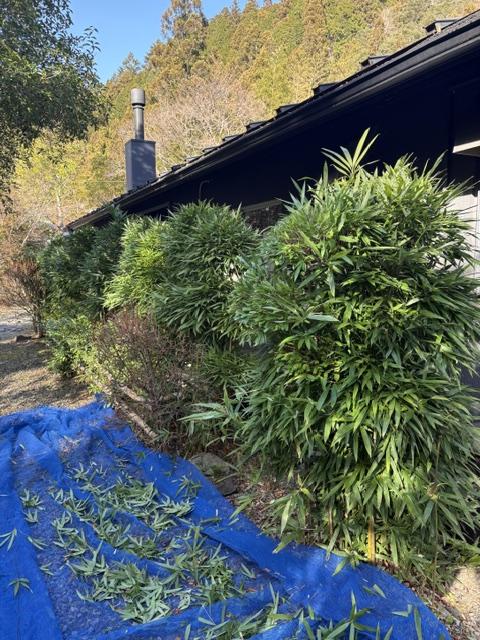 今日も津野町にある郷麓温泉にて、剪定作業を行ってまいりました。寒風が強く、指先がかじかむような中、竹の剪定と常緑ヤマボウシの剪定に取り組みました。寒い中でも、きれいに整えられた木々を見ると、その達成感に心が温まります。
