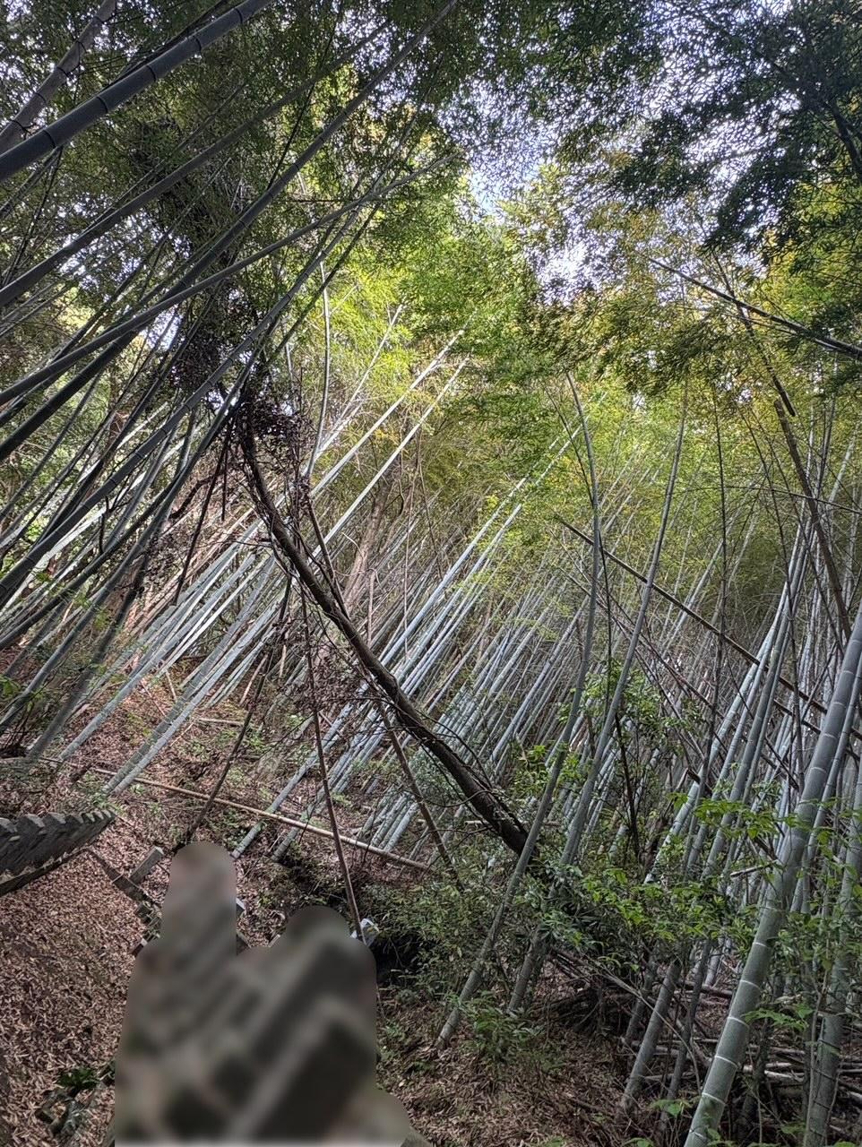 今日は、高知市にて墓地の上に生えていたカシノキが強風で倒れ、竹に引っかかっているという、やや特殊な現場での伐採作業を行いました。
