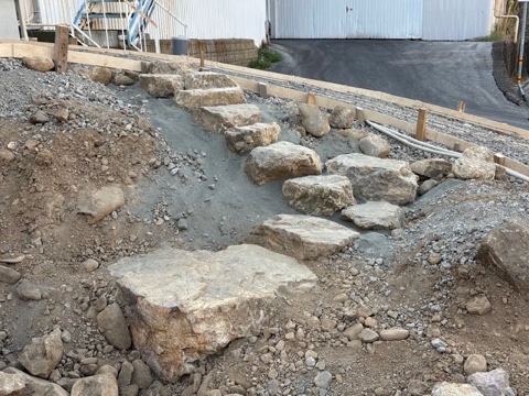 今回の施工では、自然石を使った階段やアール状のアプローチ を設計し、地形の起伏をそのまま生かすことで立体感と奥行き感を演出しました。