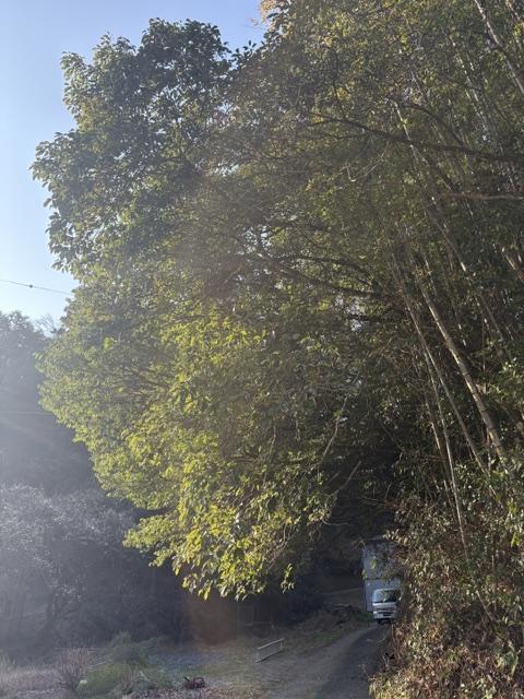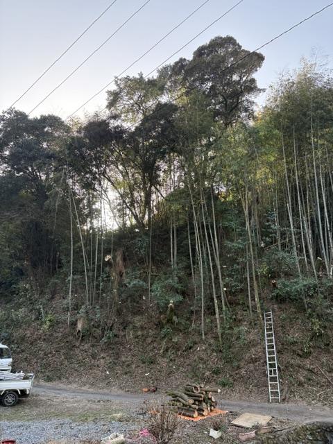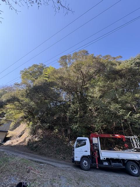 今日は、佐川町での木の伐採作業を行っておりました。安全かつ効率的に作業を進めるために、クレーンを活用しました。高所での作業は特に注意が必要ですが、無事に予定通り作業を進めることができました。
