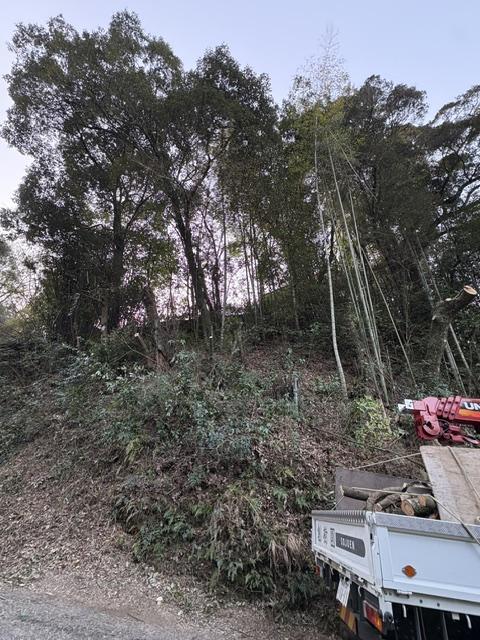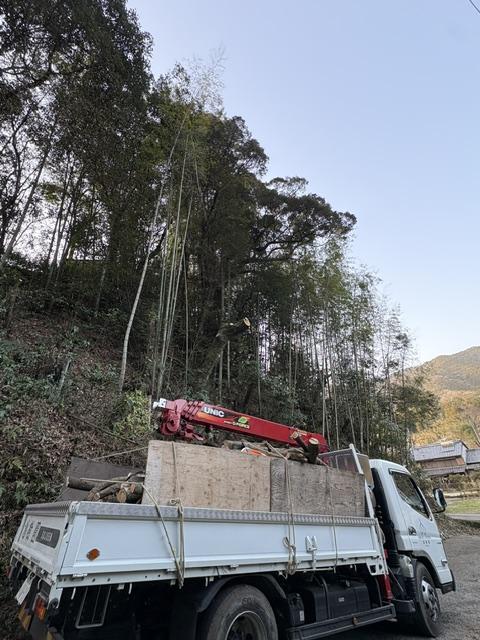 昨日に引き続き、本日も佐川町で伐採作業を行いました。本日は作業場所にトラックが入ることができましたので、クレーンを使用して効率的かつ安全に作業を進めることができました。クレーンの力を借りることで、大幅に作業時間を短縮できました。これからも安全第一で業務に励んでまいります。