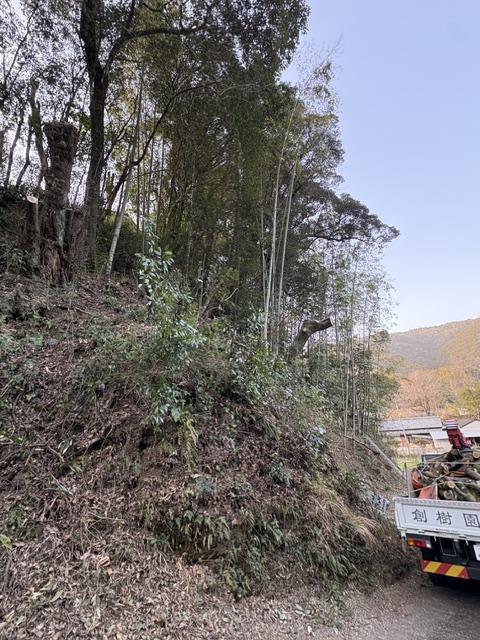 また、同じく佐川町で特殊伐採作業を行っておりました。このような作業は高度な技術と注意が必要ですが、安全第一で取り組んでおります。