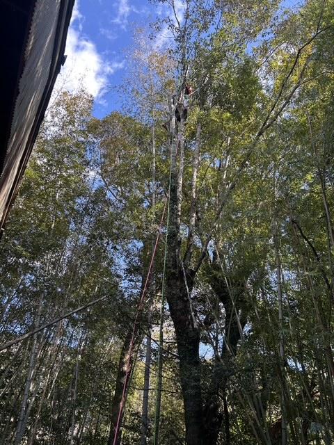 今日は、高知県佐川町にて特殊伐採作業を行いました。作業場所は、車の入らないエリアに位置する住宅のすぐ隣で、特に注意が必要なため、安全第一で作業を進めさせていただきました。このように難易度が高い作業は、少し時間がかかることもございますが、丁寧な仕上がりをお届けするため、一つひとつ慎重に作業を行っております。