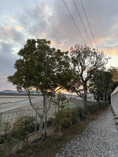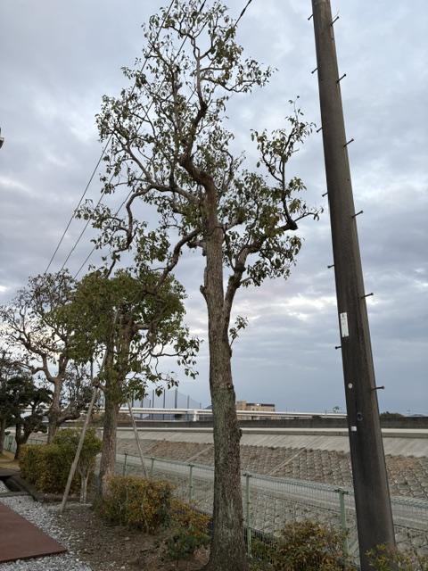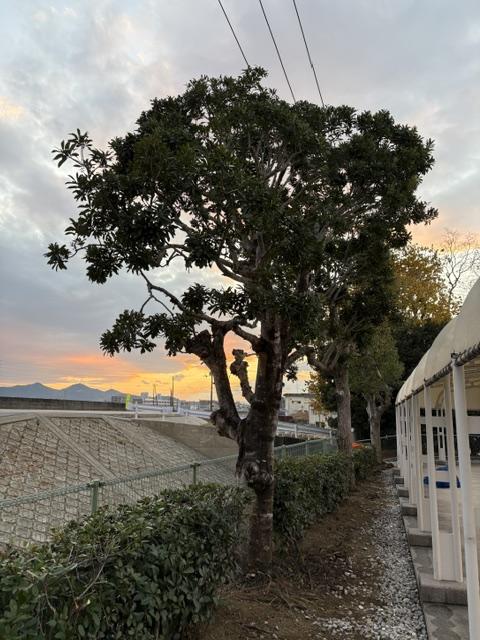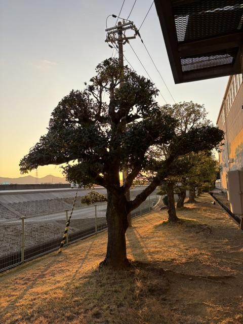 本日は高知市の技研製作所様にて、植栽の年間管理の一環として剪定作業を行いました。今回の作業では、ヤマモモやクスノキ、マテバシイなどの木々を丁寧に整えてまいりました。剪定作業は、樹木の健康を維持し美観を保つ上で重要なステップです。お客様に満足いただけるよう、一本一本心を込めて作業しています。