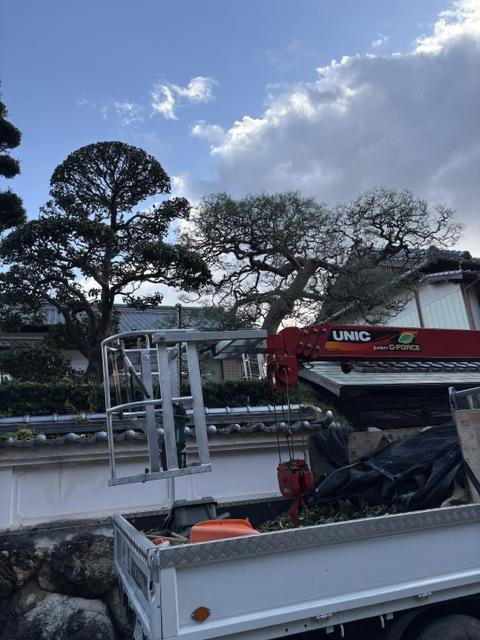今日は高知市で松の剪定作業を行いました。お客様の庭を良くするために、去年から続けてお手入れさせていただいている大切な松です。慎重に枝ぶりや全体の形を整え、より美しく健康的な生長を促すお手伝いをしております。明日も松の剪定作業を引き続き行いまして、お客様のご期待にお応えできるよう頑張ります。剪定は庭木の健康維持だけでなく、美観の向上にも欠かせません。日々の庭のメンテナンスがもたらす、庭全体の魅力をぜひ体感してください。私たちは高知県全域を対象に活動しており、県外のお客様にも対応可能です。見積もりは無料で行っておりますので、お気軽にお問い合わせください。お客様の庭の魅力を最大限に引き出すため、真心込めて対応いたします。